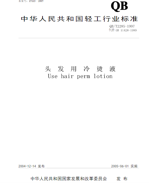頭發用冷燙液QB/T 2285質檢報告標準下載,請點擊下載