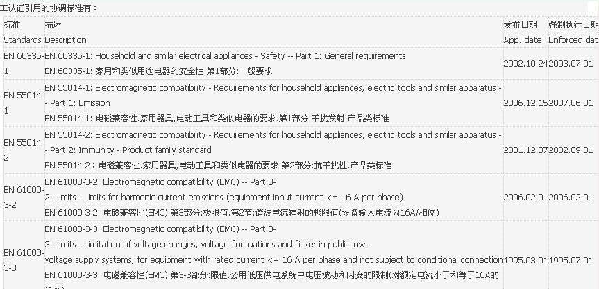 CE認證引用的協(xié)調(diào)標準有: